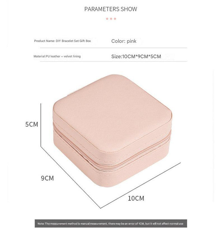 - Material: PU leather (box), plastic (beads), metal (charms), cotton (strings)