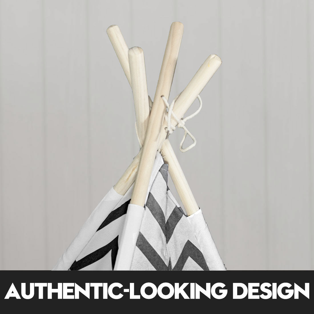 This charming teepee makes entertaining children effortless by offering a space for imaginative play and physical activity. Perfect for both indoor and outdoor use, its vibrant colours and delightful patterns create an enchanting environment. Crafted with smooth wooden poles and durable cotton canvas, it features a side window for easy supervision, tie-back doors, and a coordinating floor mat. Beautifully designed, it promises hours of engaging fun. Includes: Kids Teepee Tent, Floor Mat, and Assembly Instructions.